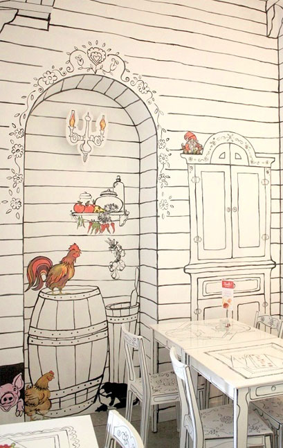 Opis: Projekt i realizacja wnętrza jednego z lokali gastronomicznych dla sieci restauracji "Kluska Polska" (obecnie "Z Gara i Pieca") - Warszawa Starówka, ul.Krzywe Koło 30