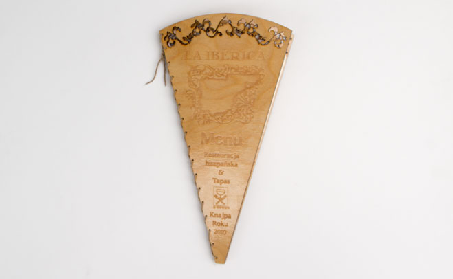 Opis:Projekt menu w kształcie wachlarza dla hiszpańskiej restauracji La Iberica nawiązujący elementami graficznymi do