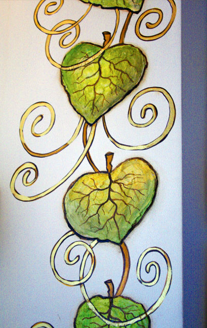 Opis:Projekt kolorystyczny i artystyczna dekoracja wejścia do sypialni w domu prywatnym