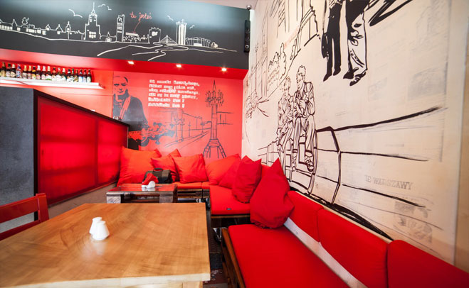 i realizacja wnętrza lokalu gastronomicznego "Konstytucji" na Pl.Konstytucji w Warszawie